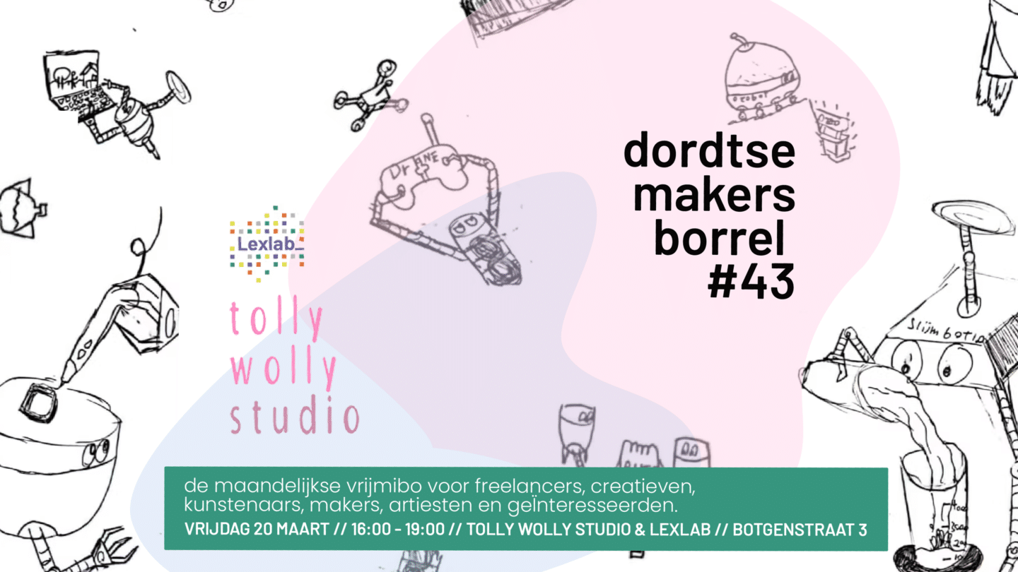 Op vrijdag 20 maart vindt de IK MAAK DORDRECHT borrel plaats bij Lexlab & Studio Tolly Wolly!